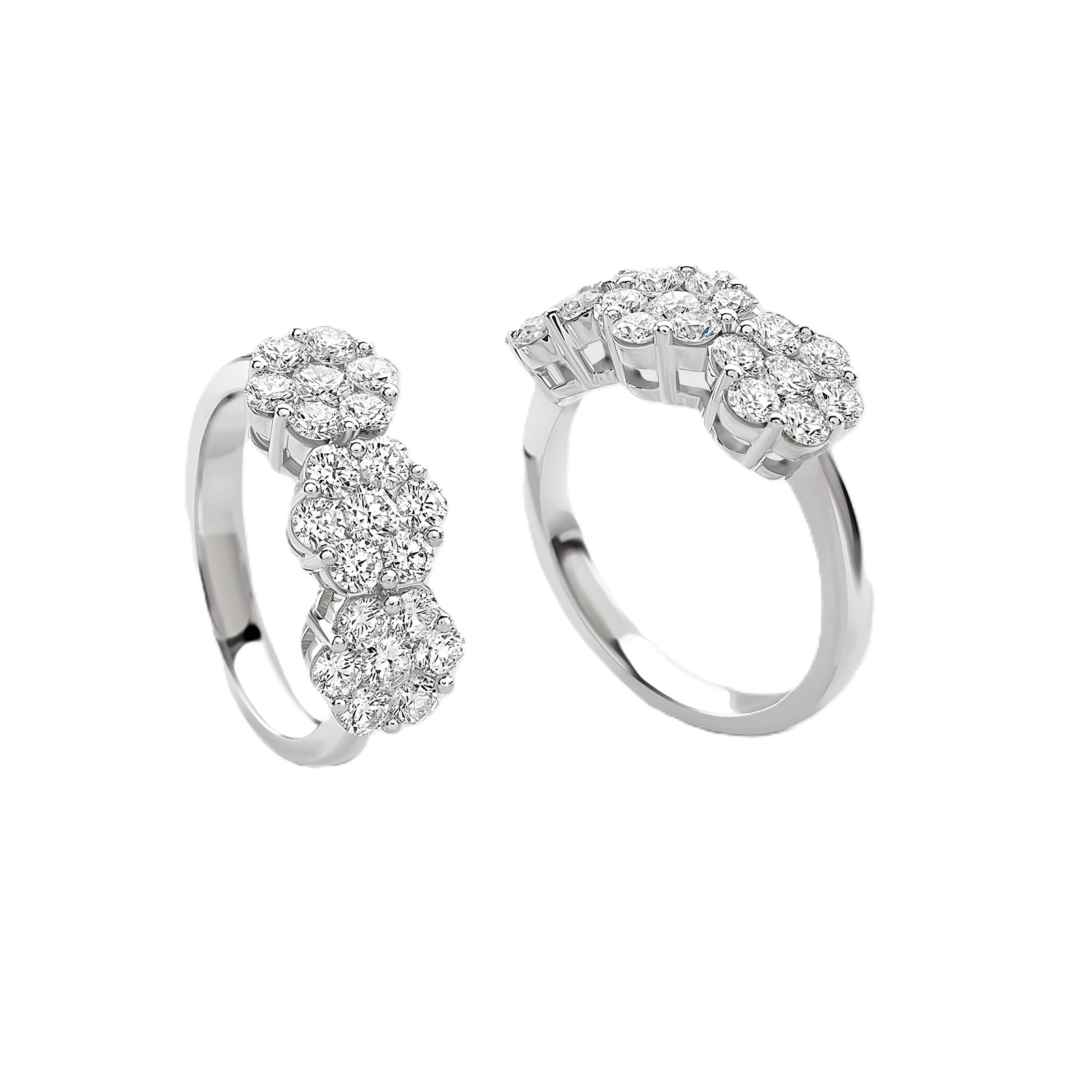 Anello trilogy in oro bianco a contorno e diamanti taglio brillante, gr.2.60